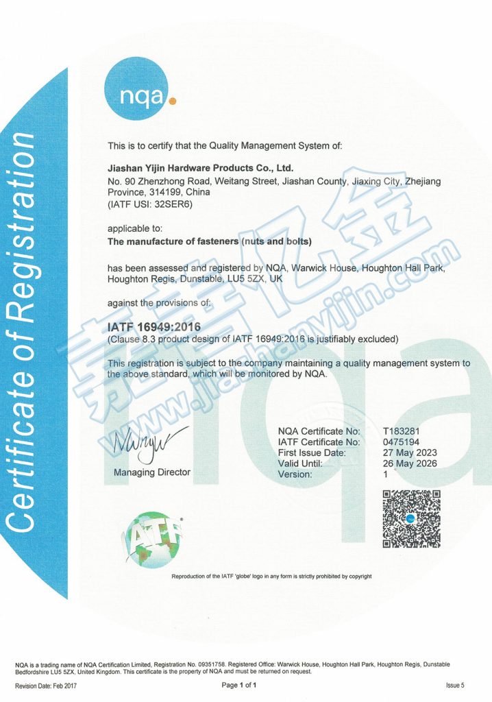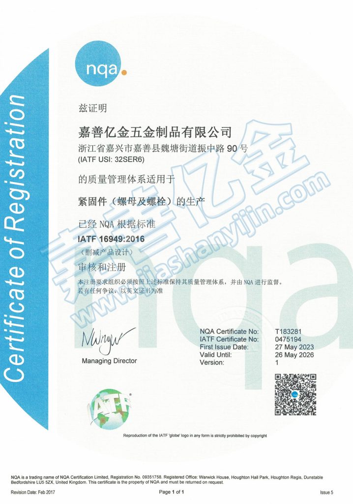 公司通過(guò) IATF16949:2016 質(zhì)量管理體系認(rèn)證。